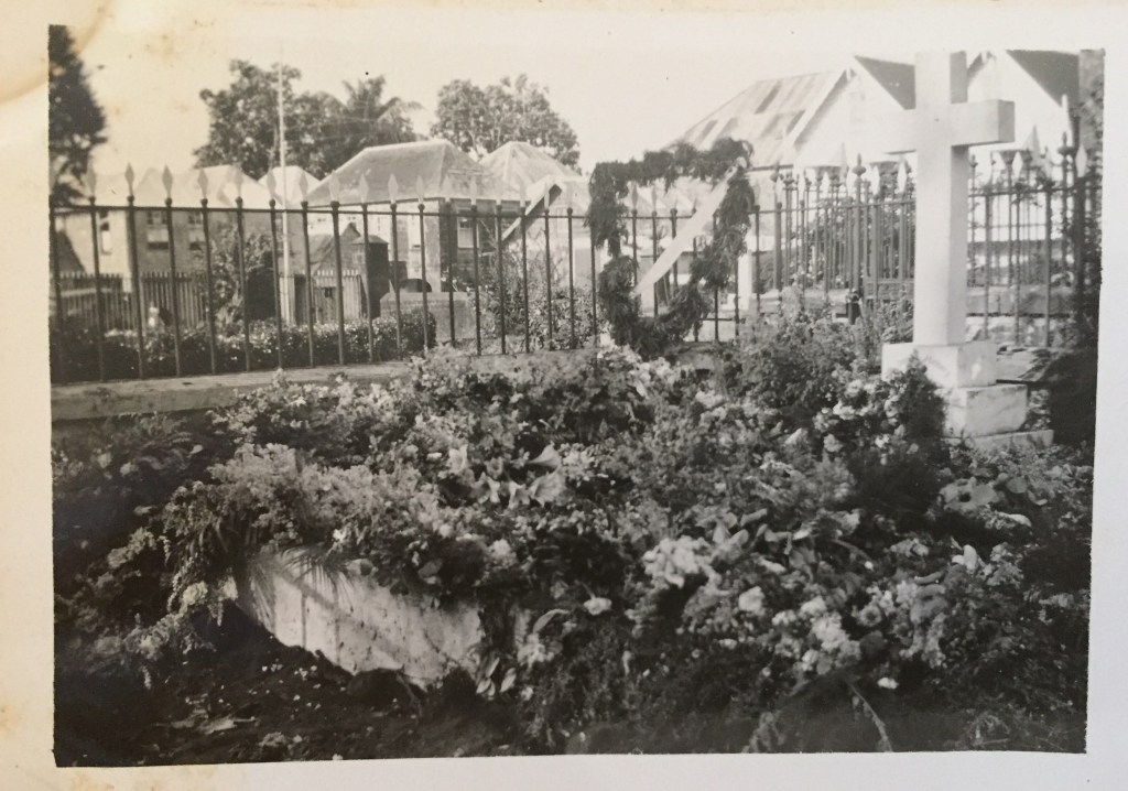 Sometime in the 30s, Carol’s mother, Marion Hazell, whose draft will has already been posted, died in St Vincent, and her sister sent her photos of the gravesite. Two crosses now, for both her parents.