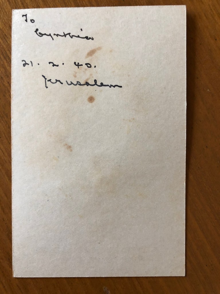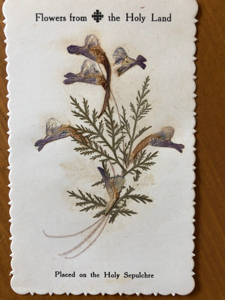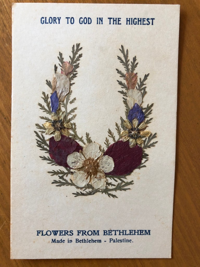 Cynthia saved souvenirs sent to her from the Holy Land, I assume by her father.
