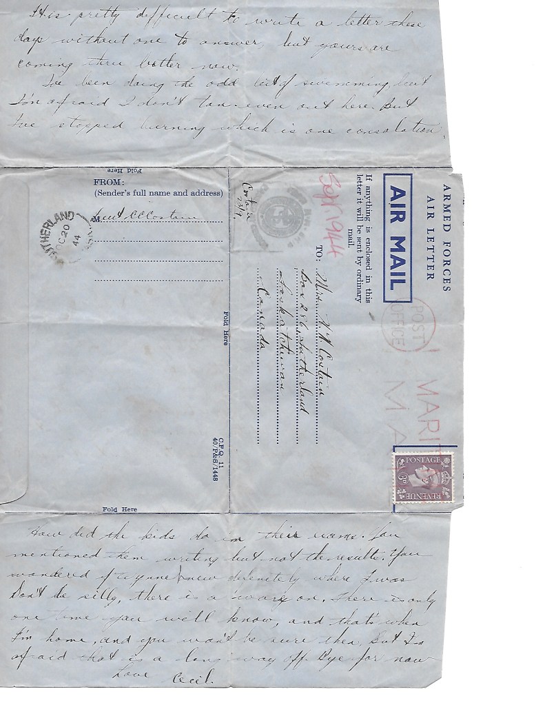 How did the kids do in their exams. You mentioned them writing but not the results. You wondered if Wynne knew definitely where I was. Don’t be silly, there’s a war on. There’s only one time you will know and that’s when I’m home and you won’t be sure then. But I’m afraid that’s a long way off.