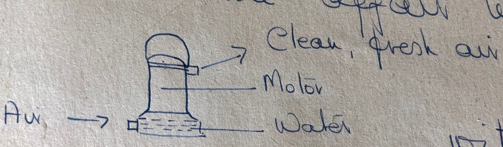 It has a little affair like a little pail with water in a container at the bottom. You can put perfume, or pine essence in the water & just switch the machine on if you like & it scents & refreshes & revitalizes the air- & if you have a cold or sinus trouble, you put Friar’s Balsam in & run it in your bedroom for a few minutes before you go to bed! Then when you want to use it as a vacuum, you put a tube affair on the “In” end & it vacuums the room just ordinarily, except that you can suck up water, clean cigarette ends off ashtrays, & pick up handkerchiefs – all of which go into the little pail of water, & then the clean air goes out the other end. Afterwards, you remove the pail & empty the water down the la-pomme! You can also use it for polishing floors, painting your house (a spray attachment) & even washing the dog, the man said – oh, & drying your hair! Can you wonder that we listened all morning!