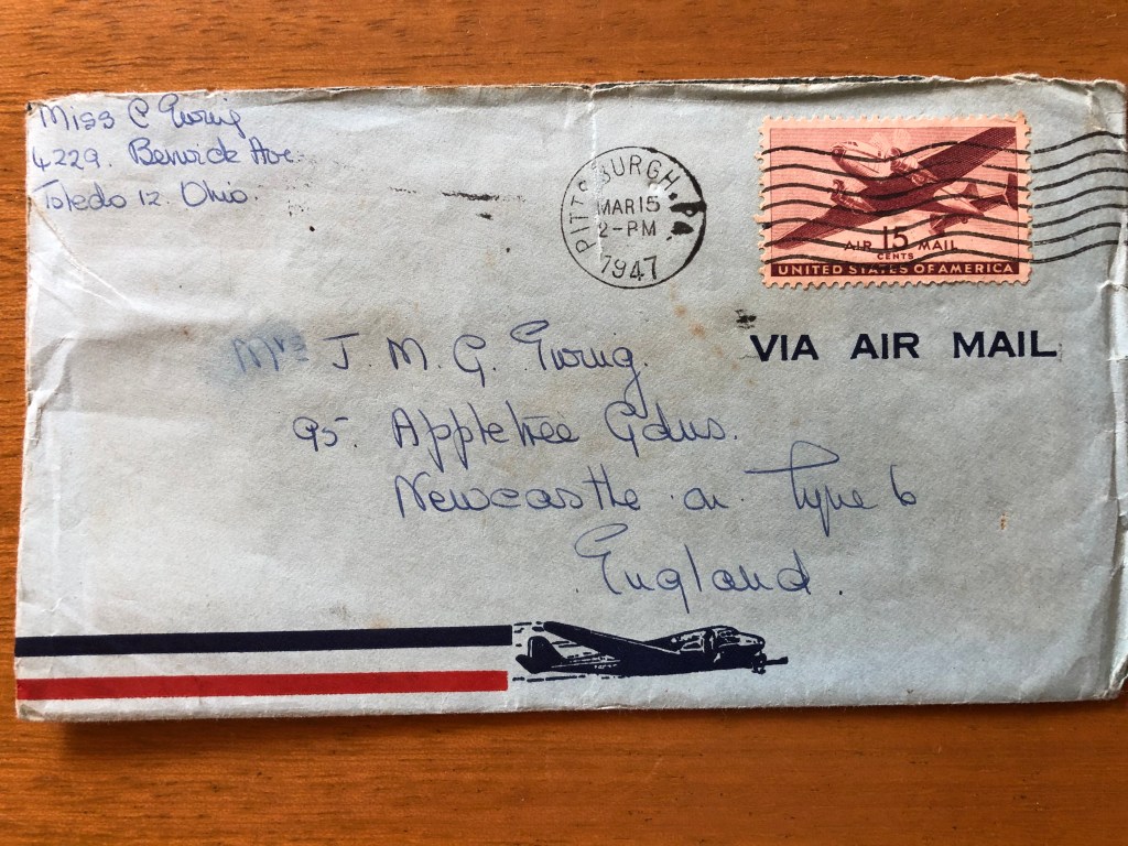 This is just a short note, as I am in the middle of writing you a long one that isn’t finished yet. I just wanted to say that I am so sorry I kept you all in suspense to hear the broadcast, when I don’t suppose it was on at all. I have didn’t know until just before it took place when I met a lady from the BBC in New York that London doesn’t actually re-broadcast it straight away but records it & then if it’s any good they put it out later. If you’ve heard nothing about it when you get this letter Miss Lang (the NY lady) said for you to ring up the BBC in N/C & ask them, & if they don’t know about it, they will find out for you when it is going to be broadcast, & if it isn’t to be broadcast, they might be able to let you hear the recording she said. I sent all sorts of messages so you should hear them! The lady in charge of the broadcast at the BBC in London is a Miss Miranda Dulley.