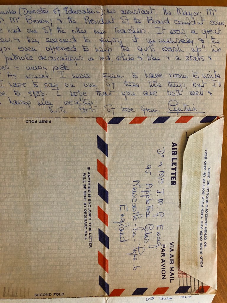 Last week, before I went away, I spoke at St. Mark’s Church one evening & had a nice time there. Yesterday I spoke at a huge women’s luncheon, which I didn’t enjoy much – they gave me one hankie as renumeration!! Today we had the last of our luncheons at school, & we invited Mr. Bowsher (Director of Education); his assistant; the Mayor; Mr. Nauts; Mr. Brown; & the President of the Board couldn’t come, so we had one of the other men teachers. It was a great success & they seem to enjoy it immensely, & the Mayor even offered to help the girls wash up!! We had patriotic decorations in red, white & blue & a stars & stripes & union jack!