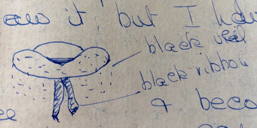 Doesn’t it look funny! But it is really quite nice & becoming, & is the sort of hat that you can wear with your hair looking a mess & still it looks all right!
