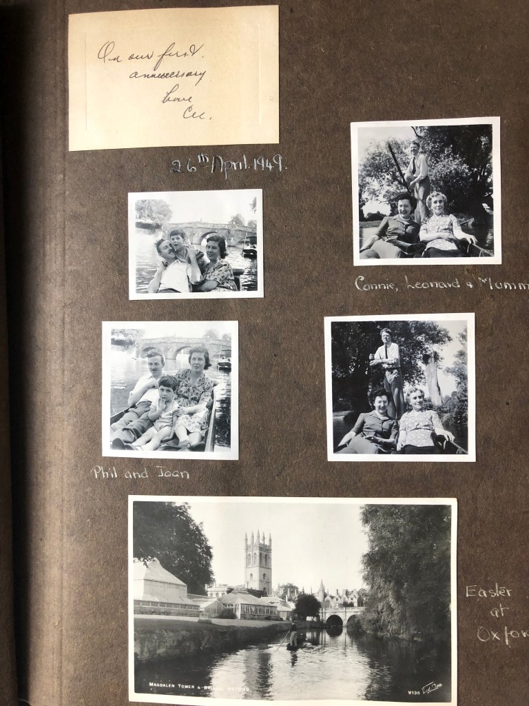 Cyn and Cec had met each other’s friends in Cambridge in the year since they had met, but the Easter holidays gave them a chance to branch out, meet friends outside of Cambridge, and enjoy the theatre, one of Cyn’s favourite things. The picture in the scrapbook for Easter 1949 above features baby Nigel, 4 months. In London, they would have spent time with Jessie and Norman Aldridge and their little girls, where Cyn had an important question to ask- would Jessie’s 6-year-old daughter Zinnia be her flower girl in July? With clothes coupons still needed, this was quite a demand but Jessie and Zinnia agreed!