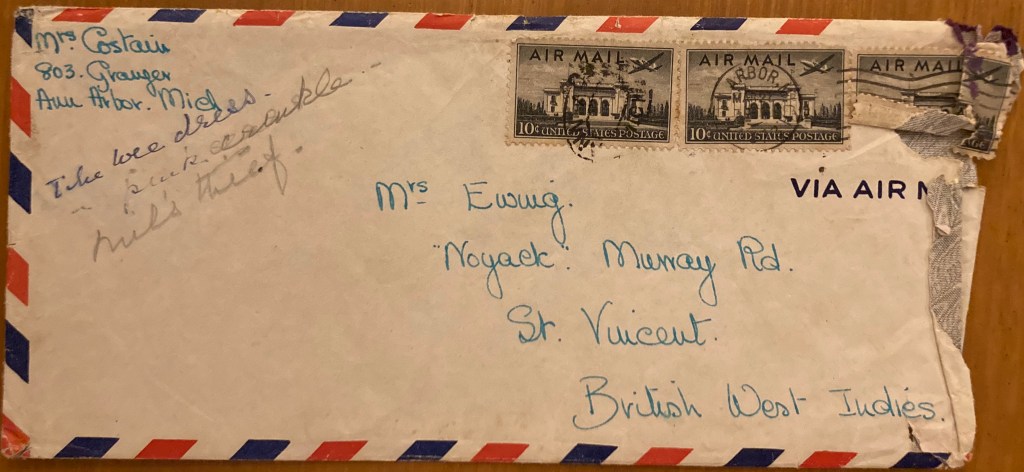 In your last letter you were telling Aunt Ettie going to Barbados- I hope that she had a nice flight & enjoyed her trip. Cec & I were intrigued at hearing about Jean & Peter & the others flying over the Soufrière [St. Vincent’s volcano] & getting such a good view. It was a grand idea for Peter, as I don’t suppose he’d ever get a chance to see much of it otherwise. I remember Margs telling of a crowd of them climbing up one time, and wondered if people still did that, or if it is too busy bubbling now.