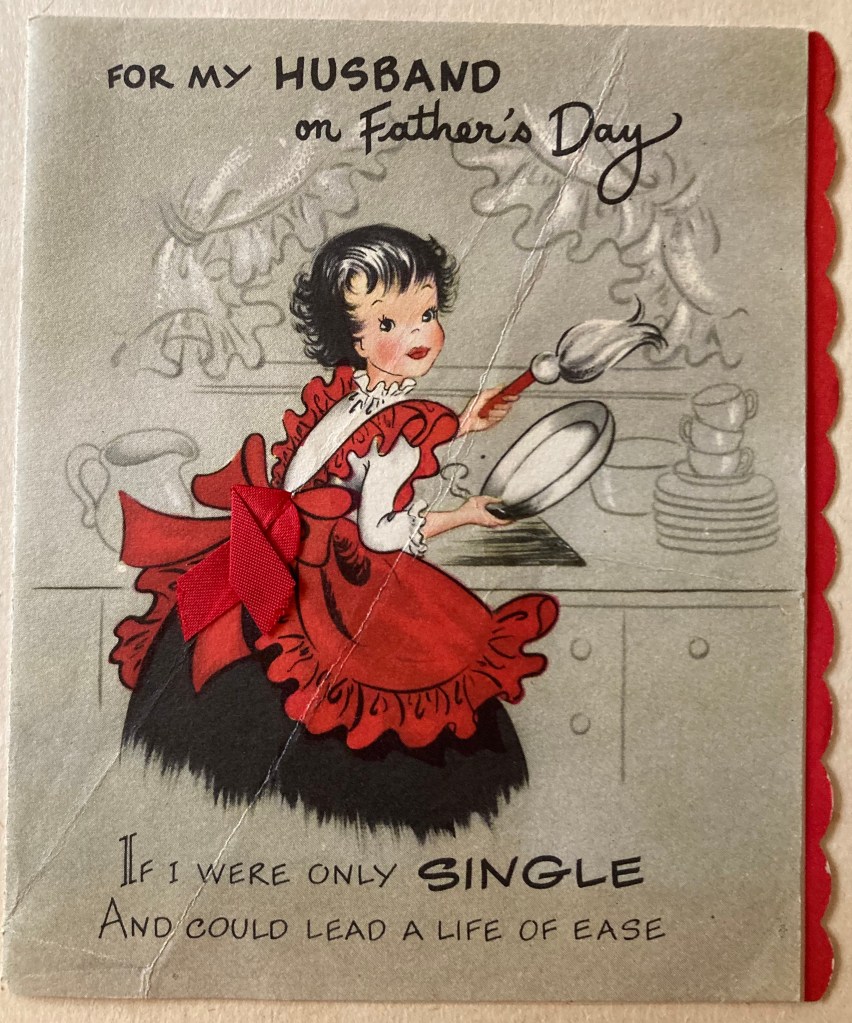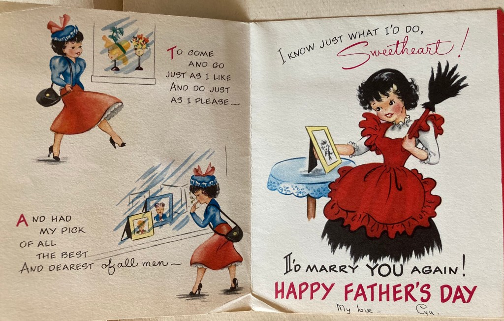 Next day- Sunday – of course we slept late, and I, at any rate, had a lazy day! It was Father’s Day, so I had a funny card for Cec & a little present of a propelling pencil & he didn’t have to do any chores all day!! He went to the Lab. & worked, & as I say, I didn’t do much as we ate party leftovers! We took a trip to the Sutherlands in the afternoon just for a minute, as they have got a puppy! Grunberg took the children to see the new County Humane Society Animal Shelter which has just been built & is apparently the last word, & they came back with this little puppy! It is black- 1/2 Cocker & 1/2 dachshund, but at the moment he just looks roly-poly puppy & so sweet! He staggers about & his little fat tum weighs him down & he slithers to one side! He is very cuddly & affectionate, & of course the girls are crazy about him – & Gunborg is just as bad!