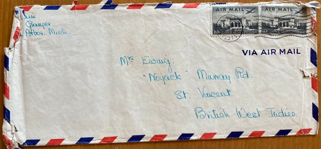 I was so glad that you had got my letter with the cheque in, & that it was O.K. about taking your money into Canada. I’m looking forward to hearing that you have got your passage all fixed & hope that the man has come back from his holiday by now! I was telling Cec that you were probably having collywobbles in your tummy already, although by now you should be a seasoned traveler! I was amused at your saying that your previous week’s letter had been quite an effort to write – you were very noble to write it then I think – I usually put it off if I feel like that! I did think it wasn’t quite up to your usual high standard, but we enjoyed it just same!