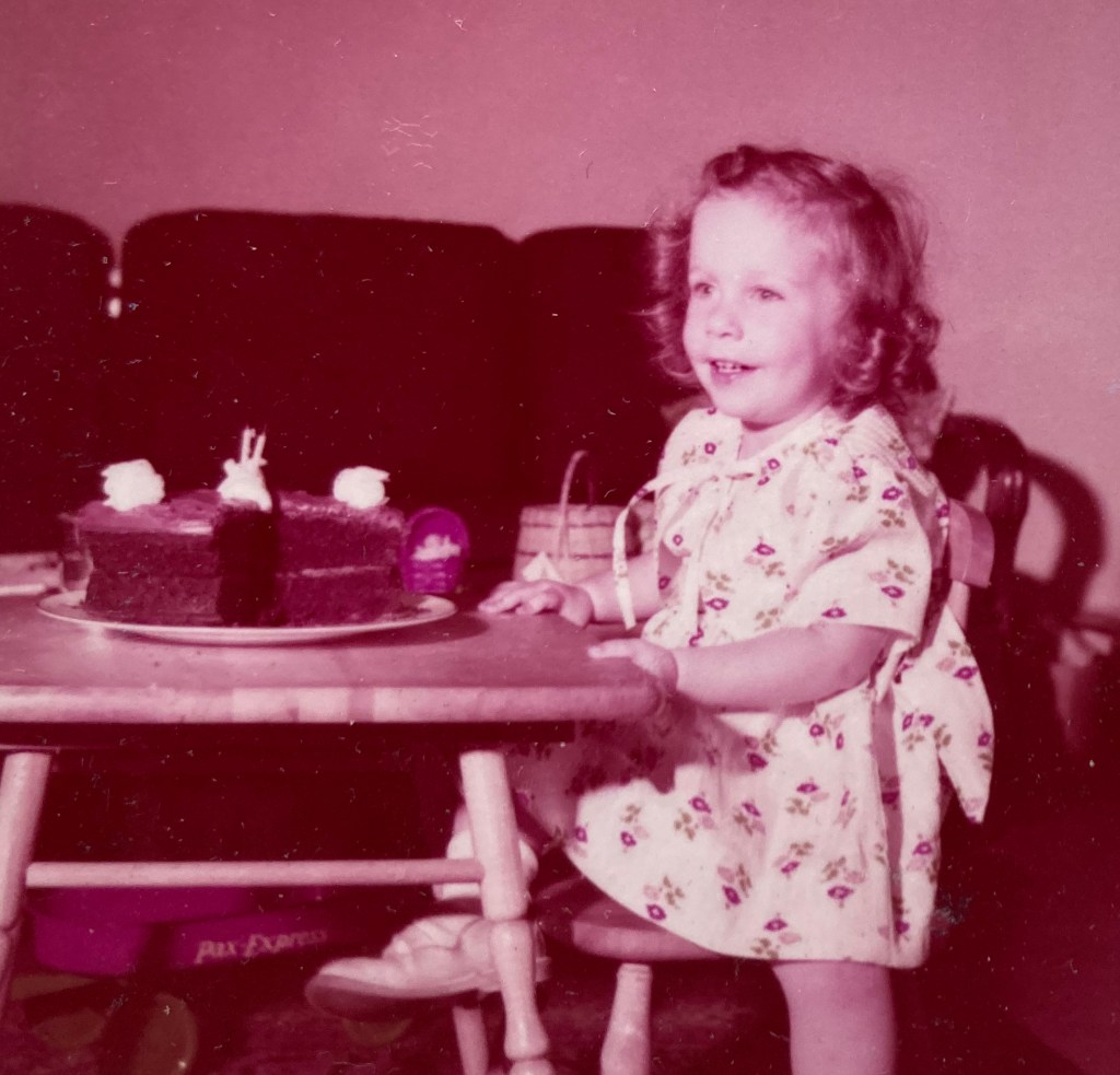 We celebrated Linda’s birthday yesterday & all had a lovely time. We decided that it would spread out the excitement more if we had it now instead of waiting till we were away & also that she would probably enjoy it more at home. We got her a dear little red & white tricycle – just a wee one (but not wood- a real tricycle) – & a little red wagon (Richard has one & she loved it ) & a big beach ball & a book (the latter was a request!!) Cec & I could hardly wait till Sat. to give her the things, we were so excited!! When she woke in the morning, we went in & said “Happy birthday, Lindy” & gave her the book & she was just enchanted! She was so thrilled & kept saying “Lindy has a birthday book!” & when she saw Chrissy out of the window she kept calling “Look Chrissy – a book”! After breakfast we took her in the sitting room where we had all the presents & she just stood and said “O-oooh!” Then she ran to one & the other “A bicycle a (for) Lindy” “A wagon a Lindy” “A big ball a Lindy”! She didn’t know which one to go to first & it was such fun to watch her! Then she opened the parcels & was really so astonished at the black dolly!