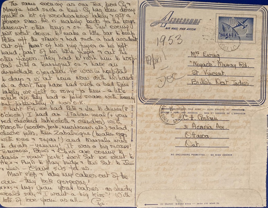 The same evening as our Tea, poor Cy & Margie had such a time. Cy has been doing quite a lot of woodworking lately & got a power saw. He is making beds for the boys amongst other things & on the Sunday evening just went down to make a little bar to keep Peter off the stairs & had such a bad accident. Cut off part of his ring finger on his left hand, part of his little finger & cut the other fingers. They had to rush him to the hospital with a tourniquet on & have an immediate operation. He was in hospital 4 days & is at home now with his hand in a cast. They have had such a bad time lately, we felt so sorry for them – a little while ago they had a polio scare with Tommy but fortunately it was O.K.