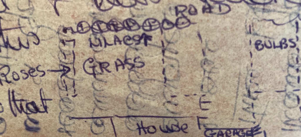 the single bed on the right of the drive is empty and we are digging that up & going to get plants. Cec is very keen on canna lilies – do you know them? They are a red lily which flowers all summer & we thought they would be nice as a centre with maybe white flowers on either side & a border. The bulbs are lovely- the bed is packed full- crocuses are over now but the scillas & grape hyacinths are out & a little pink & white hepatica, the daffodils are just coming & the tulips are in bud. The other bed at the side & along side of the house has masses of poppies & irises & lilies & seedlings of marigolds etc. The back has just a little bed along the edge of the terrace, but Mr. Scott says the hillside is a mass of wild poppies. We have bought a lawnmower, spade (small size!) & clippers! Really going into business!