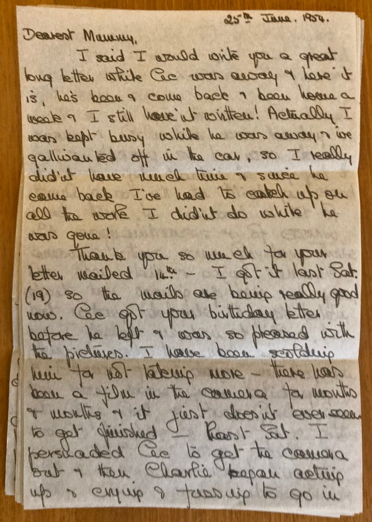 Thank you so much for your letter mailed 14th – I got it last Sat. (19) so the mails are being really good now. Cec got your birthday letter before he left & was so pleased with the pictures. I have been scolding him for not taking more – there has been a film in the camera for months & months & it just doesn’t ever seem to get finished- last Sat. I persuaded Cec to get the camera out & then Charlie began acting up & crying & fussing to go in the car until Cec got so disgusted with him that he just put it all away again! However I hope we will get them soon.