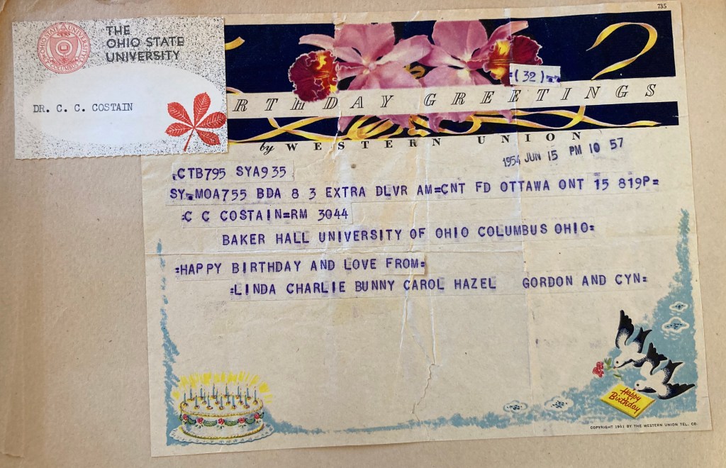 It is so nice to have Cec home again & Columbus was terribly hot & steamy so he was doubly glad to get back! He enjoyed it though & as all the Michigan crowd were there he renewed a lot of old acquaintances & of course among the others, saw Gordon. There has been talk & vague rumours about him coming up here all year, but nothing definite till just lately so I didn’t mention it. Now, the idea is that they will all come to Ottawa for 2 days in Aug. on their way home from holidaying at Cape Cod, so that Gordon can see Dr. Herzberg & plan for a future longer visit. I have written & told Gunborg we want them to stay with us (could put the double couch thing with the single bed in the spare room for the girls – us on the sofa & G & G in our room) but have heard no more. It will be such fun to see them again & can hardly imagine how big the girls will be– Anne has graduated, so is going to England for a year at the Perse School in Cambridge where she was before & will stay with her Aunt.