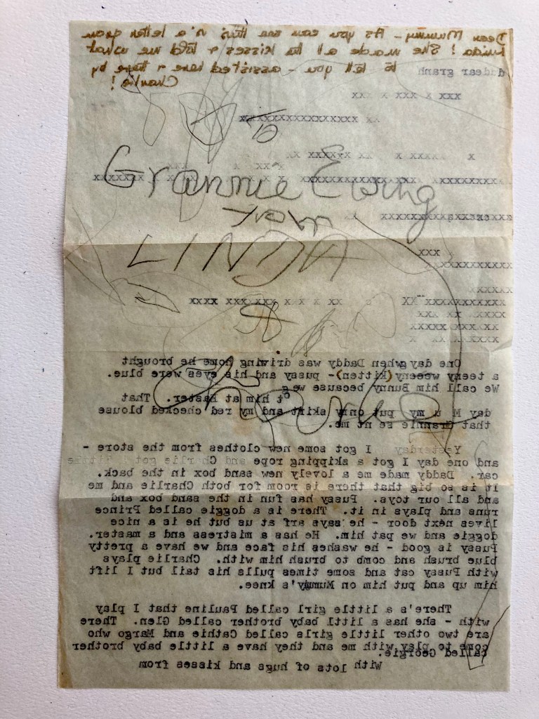 The children are awake so I must finish & dash to post this. It is a lovely hot day & I have their paddling pool out. Cec has made them a beautiful big sandbox in the back & they are in luxury! I have begun a “letter answering” letter, but will send it by sea & answer all your questions!
