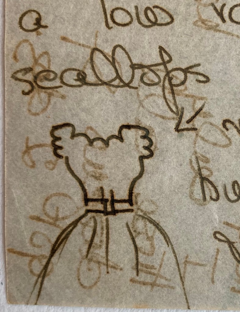 Just looking at the list of things in your parcel, I see “scraps” & it is such a good thing you sent them, because Jean was right after all & the straps of the dress were too short! Actually it wouldn’t have mattered too much except that it made the waist too short & even the skirt a bit short, but when I added about 2″ to each strap it was just right & looks so nice. The children are very taken with it & Lindy at once noticed that it was just the same as my green one! The weather has been so queer this summer, that I haven’t worn sundresses as much as usual but with having the little white jacket the green one has been so useful & looks so nice. Do the girls all wear strapless bras in St. V.? I have such shoulder strap trouble with sundresses! As you will gather I altered the green dress very successfully & have worn it so much. The dress itself I just took in a little under each arm, but the jacket was so big right in the front, (where I should have a large bust!) that I ended by cutting about 1 1/2” off each side of the opening & putting on the buttons again & making new buttonholes. It looks lovely now & the neck fits nicely as well as the waist part & I am so pleased with it.