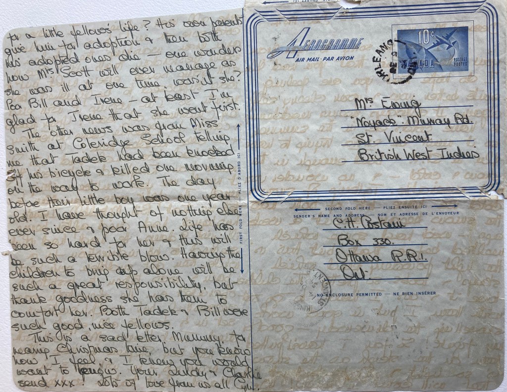 The other news was from Miss Smith at Coleridge School telling me that Tadek had been knocked off his bicycle and killed one morning on the way to work. The day before their little boy was one year old. I have thought of nothing else ever since & poor Anne. Life has been so hard for her & this will be such a terrible blow. Having the children to bring up alone will be such a great responsibility, but thank goodness she has them to comfort her. Both Tadek & Bill were such good, nice fellows.