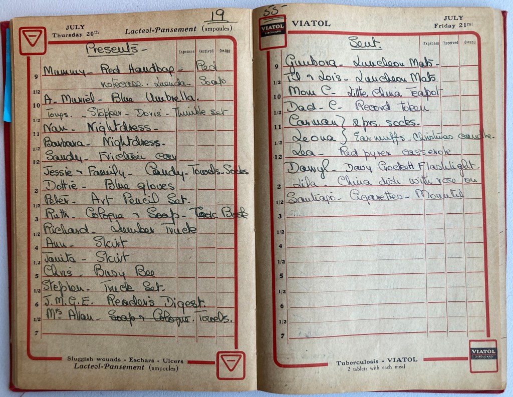 This month is such a busy one for Cyn that her mother doesn’t get to hear all the juicy details about the celebrations until the New Year. In her two previous letters Cyn writes about her preparations for Christmas – in fact, her packing of parcels to send outside of Canada happened in November to make sure they got to their destinations in time- but there is no doubt she enjoyed ordering the children’s toys from catalogues, and making her Christmas cakes and pudding, more than writing the 80 Christmas cards they sent!
