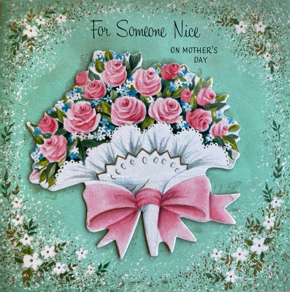 Immediately after finishing her last Air Form, Cyn started this letter to her mother, and then finished it 2 1/2 weeks later, in the middle of their road trip to Michigan for their holiday. But the complaints about the weather are completely in agreement with Mrs. Edmunds’ letters which have interrupted the Costain accounts! Events in the last 2 hectic weeks of May included Mother’s Day, with a card and a visit from Lila, when Linda got to wear her new yellow-and-white outfit just completed by her clever Mama.