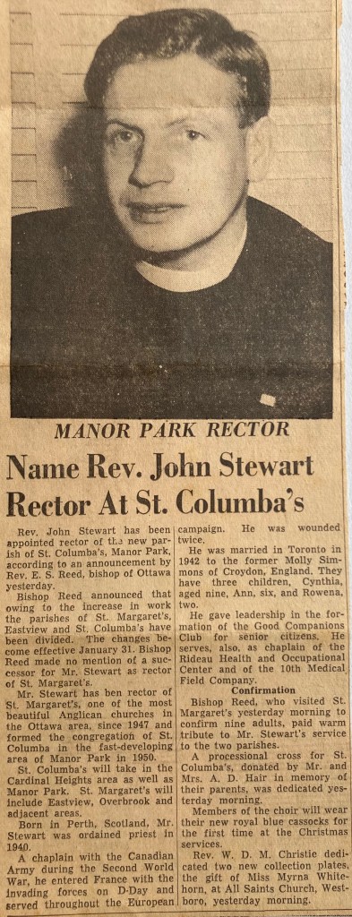 Carol was always interested in Church news and would have been very pleased to get this background information on Cyn’s minister whom she had met on both her Ottawa visits.