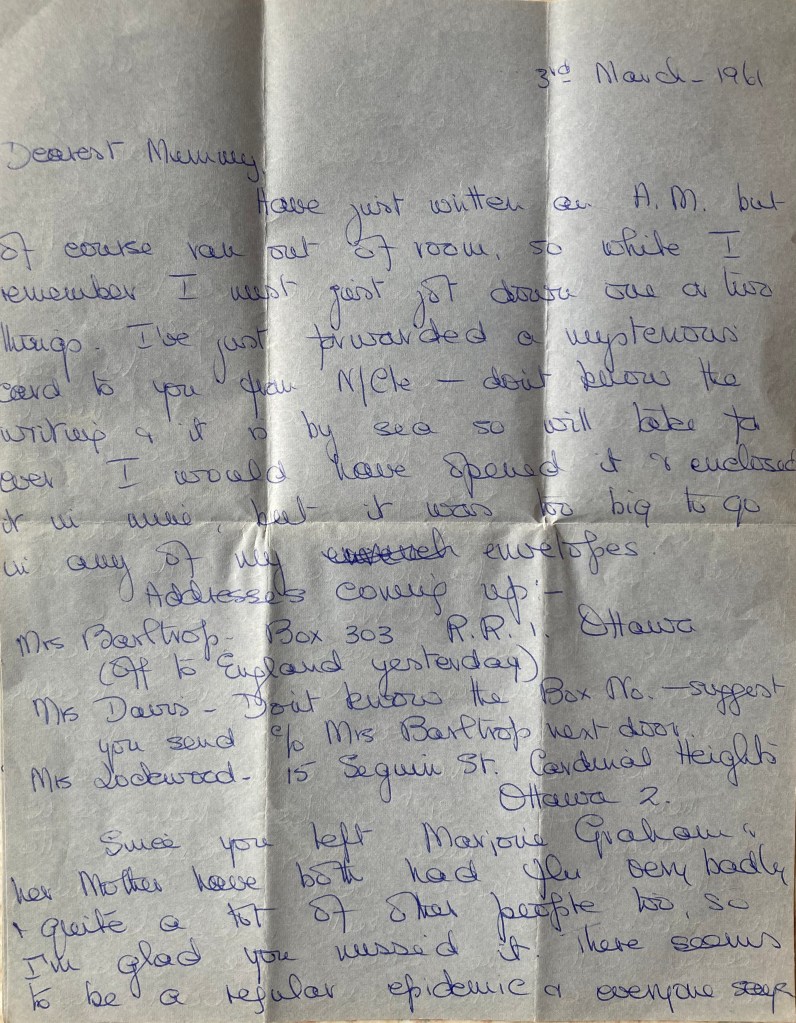 Mrs. Barltrop Box 303 R.R.1 Ottawa (off to England yesterday)