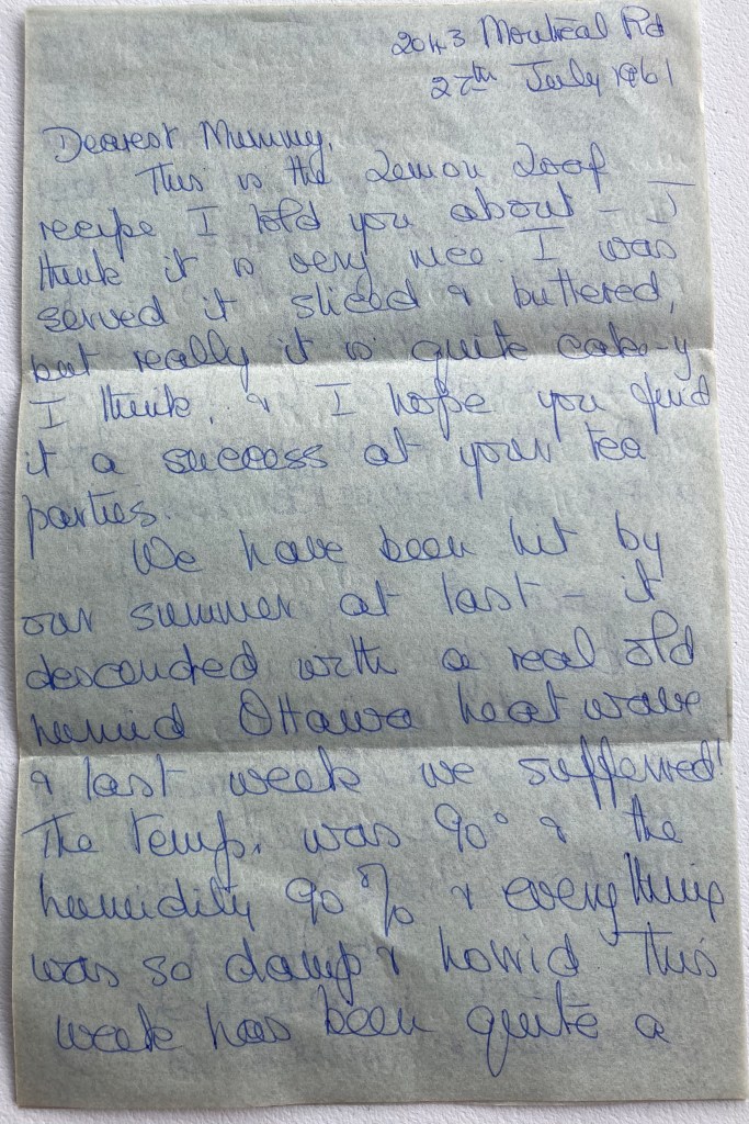 Yesterday was our 12th wedding anniversary – aren’t we getting on?! We had to celebrate on Tues. evening as Cec had a friend in Ottawa for 1 day & night on his way home to Saskatoon from Paris, & we put him up last night. His name is Gordon Shepherd & he is an Ass’t. Prof. at the U. of Saskatchewan & Cec had met him at the meeting in Amsterdam & told him to stay with us in Ottawa. He is a nice, a rather quiet shy fellow, looking forward to getting home to his wife & little boys after 3 mths. in France. He arrived at the Airport at about 7 last night & left again at 7 this evening, so Cec & the children enjoyed two jaunts to see the planes! He knew Boris at the U. of Toronto so we had Boris & Joan over last night for drinks & then coffee & fresh raspberry pie.