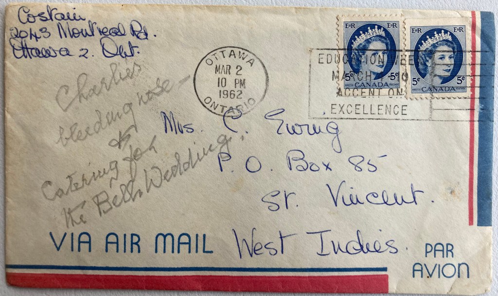 This letter mentions in passing an event that must have loomed large in February 1962- Cyn’s Cookery Demonstration that the Ladies Guild of the Church used as a fundraiser. I am so sorry that the letter giving Carol details of her plans and preparations is missing, because it was quite an undertaking. Nowadays, television/Youtube has made us familiar with the cook demonstrating the preparation, combining of ingredients, setting up of the dish to be cooked, all the while chatting about what they were doing and why, but in the 60s this sort of entertainment combined with education was rare. Cyn was a professional, and would have preferred to do this sort of thing after her training instead of teaching, and these demonstrations were a successful illustration of how good she would have been at it.