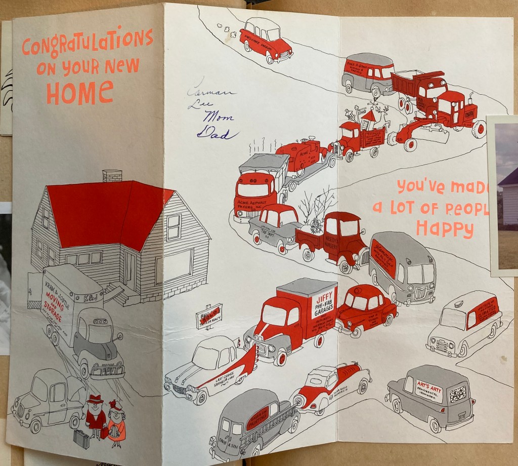 The basement was unfinished, with a concrete floor, a sump pump in one corner to deal with spring flooding threats, the furnace under the stairs, the washing machine and dryer that kind Dorothy Scott had included in the house price close by, and a remnant of the farmhouse origin- a cold room in one corner, insulated from the heated house, with wooden shelving for the jams and jellies and bins below with earth in, to bury the root vegetables for winter storage. Cec had his tools down there, (and added to them more farm remnants as they appeared from overgrown mounds in the neglected garden). There was lots of room for storage, a permanent table for Charlie’s train set, and all the boxes and extras that come with moving.