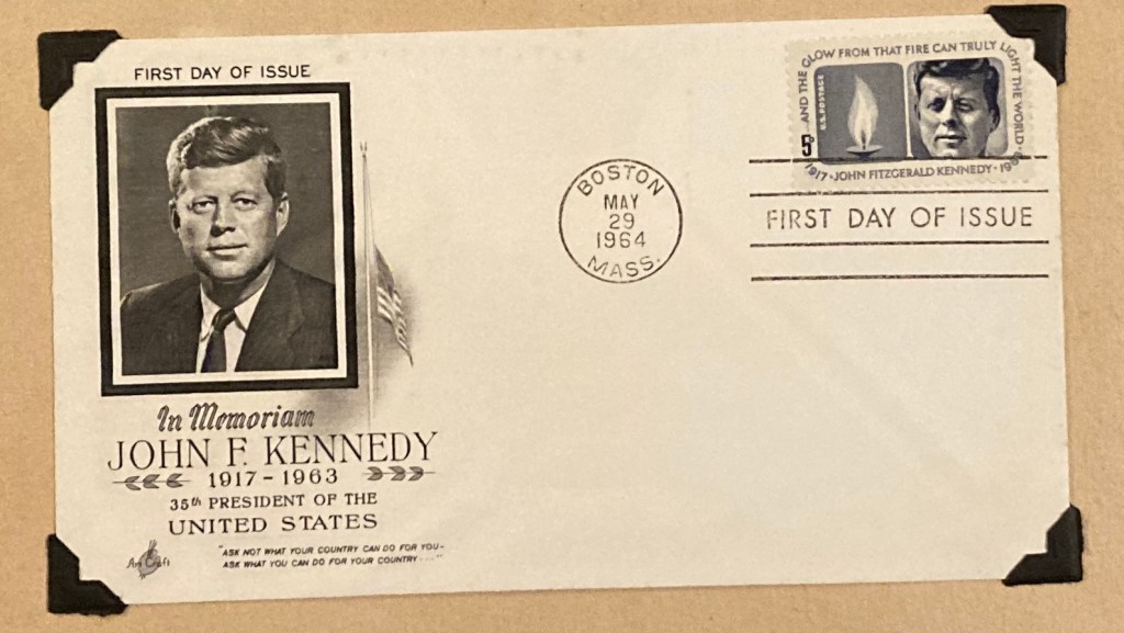 In her scrapbook, Cyn kept a column of Art Buchwald’s from the newspaper and a cover of the memorial stamp issued the next spring. The assassination was an introduction to the troubling issues of the 60s to come: the Civil Rights struggles, the Vietnam War, the continuing Cold War, worldwide student protests, and more assassinations in the States.