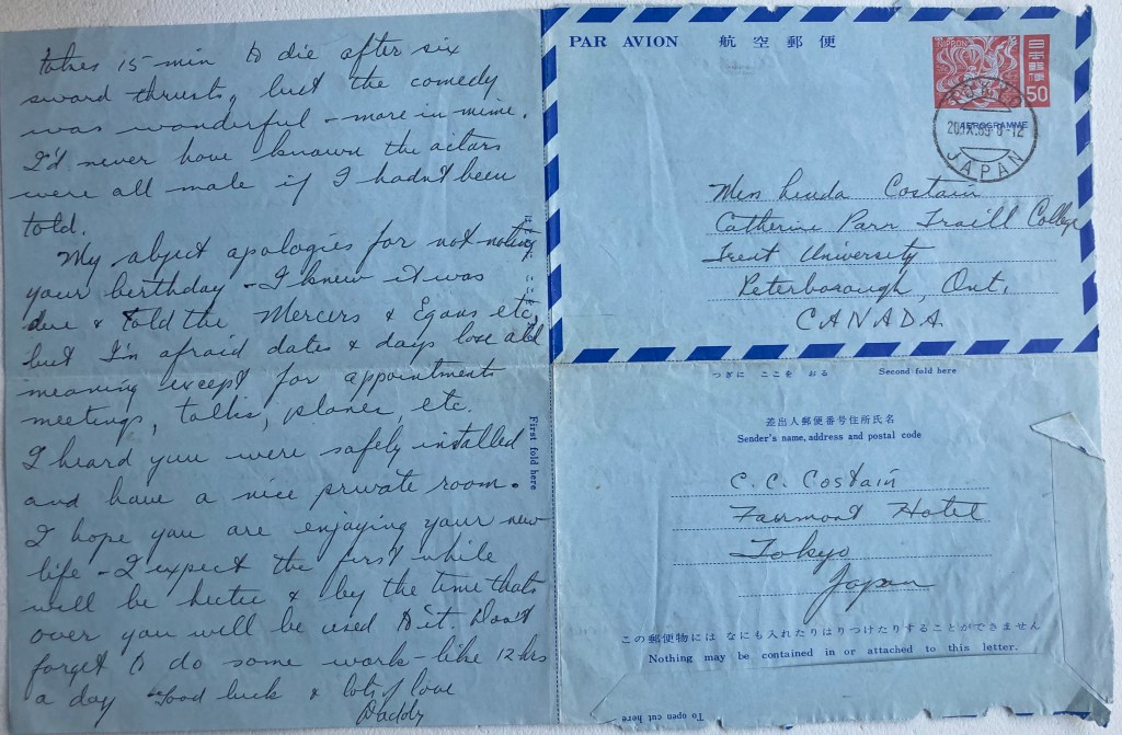 My abject apologies for not noticing your birthday – I knew it was due & told the Mercers & Egans etc., but I’m afraid dates & days lose all meaning except for appointments, meetings, talks, planes, etc. I heard you were safely installed and have a nice private room. I do hope you are enjoying your new life – I expect the first while will be hectic & by the time that’s over you will be used to it. Don’t forget to do some work – like 12 hours a day.
