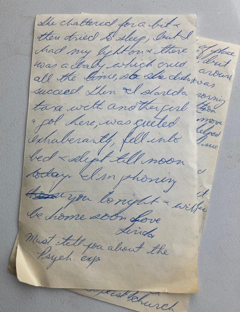 As an addendum, here is a letter from Linda at university (missing the first page) written at the beginning of November, after the weekend she spent visiting her Auntie Merle and Uncle Dix and cousin Bruce in Brantford.