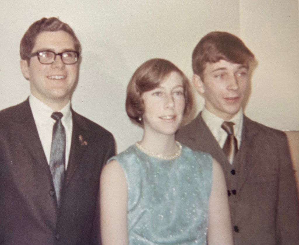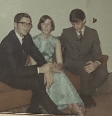 On Sat. morning, we got up late, but Lindy had an appointment at the Eye Dr. so I suggested that Bruce should go downtown in the car with her and then while she was in the Dr’s, he could drive around and see where the Skyline Hotel was and the parking etc. so that he would know where it all was for the dance that evening. While they were gone, Charlie had to go for his driving lesson, so he had an early lunch and went, and they came in late, Lindy having taking Bruce to see the Arts Centre, so the day just seem to fly. I had ordered corsages for the 2 boys from the greenhouses, so they drove over later in the afternoon to pick them up. I had got Lindy a pretty wrist corsage of little yellow rosebuds for her graduation from Cec and me, and then Bruce had phoned and asked me to order her a corsage of 2 gardenias for the dance. I had said to Charlie that he must find out what colour Maureen’s dress was so that he could get flowers to match, and he made me laugh so much. He asked one of her friends who said Maureen was wearing a pink dress, and Charlie replied, quite seriously ‘Oh dear. It will clash with my mauve suit’ and he said the girl looked at him with stunned horror and said ‘You can’t really mean it!’ so that Charlie just couldn’t keep a straight face any longer! Anyway, he got her a very pretty wrist corsage (on a little elastic bracelet) of baby pink rose, buds, and the gardenias were lovely too. It was a dinner dance, but not starting till 8:30 so we had a buffet supper at 6 and then they went and got ready. Bruce looked very nice – he is quite conventional but always immaculately groomed, and he has a dark suit, whereas Charlie looked much more young ‘mod’ type in his green! Lindy looked lovely in her dress, and was delighted with it. It was very plain, but suited her exactly, and it was a comfortable sort of dress too with no fuss, so that she could be comfortable in it. She had gold sandals to match the gold on her graduation dress, and I got her a little gold evening handbag, so to co-ordinate her evening dress, which had silver in it, I got a very pretty beaded trim, just to go around the neck. It was just about an inch wide and was long gold and silver beads with pearls and I got her a pair of little gold earrings with a single pearl hanging from a little chain so it all looked very nice. I had great fun getting all these glamorous, things ready – a long time since I used to get them for myself!