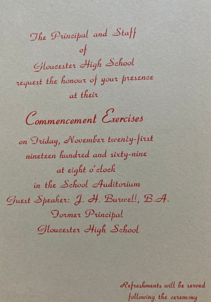 After the Graduation, there was a reception at the school for everyone – this was about 11 o’clock or more as the thing took so long with all the speeches and everything – and all of us parents congratulated each other and all the boys and girls caught up on the news! We introduced Bruce to everyone and introduced Charlie’s girlfriend, Maureen to Cec and Bruce. She is a nice little girl – rather like Janet, small and dark, but not quite so freckly! She isn’t all that pretty, but is lively and bright and amusing, which Charlie enjoys! After we had chatted, and had coffee and cookies – by the way, the change in Lindy is fantastic – she was dashing up to people and chatting – boys and girls – which she never would have done before – and we went home, or at least Charlie went off with some of his pals for a while – but the rest of us went home and sat and talked some more. Cec was quite tired as it was his first social outing, so he and I went to bed and left the kids to gab till goodness knows when!