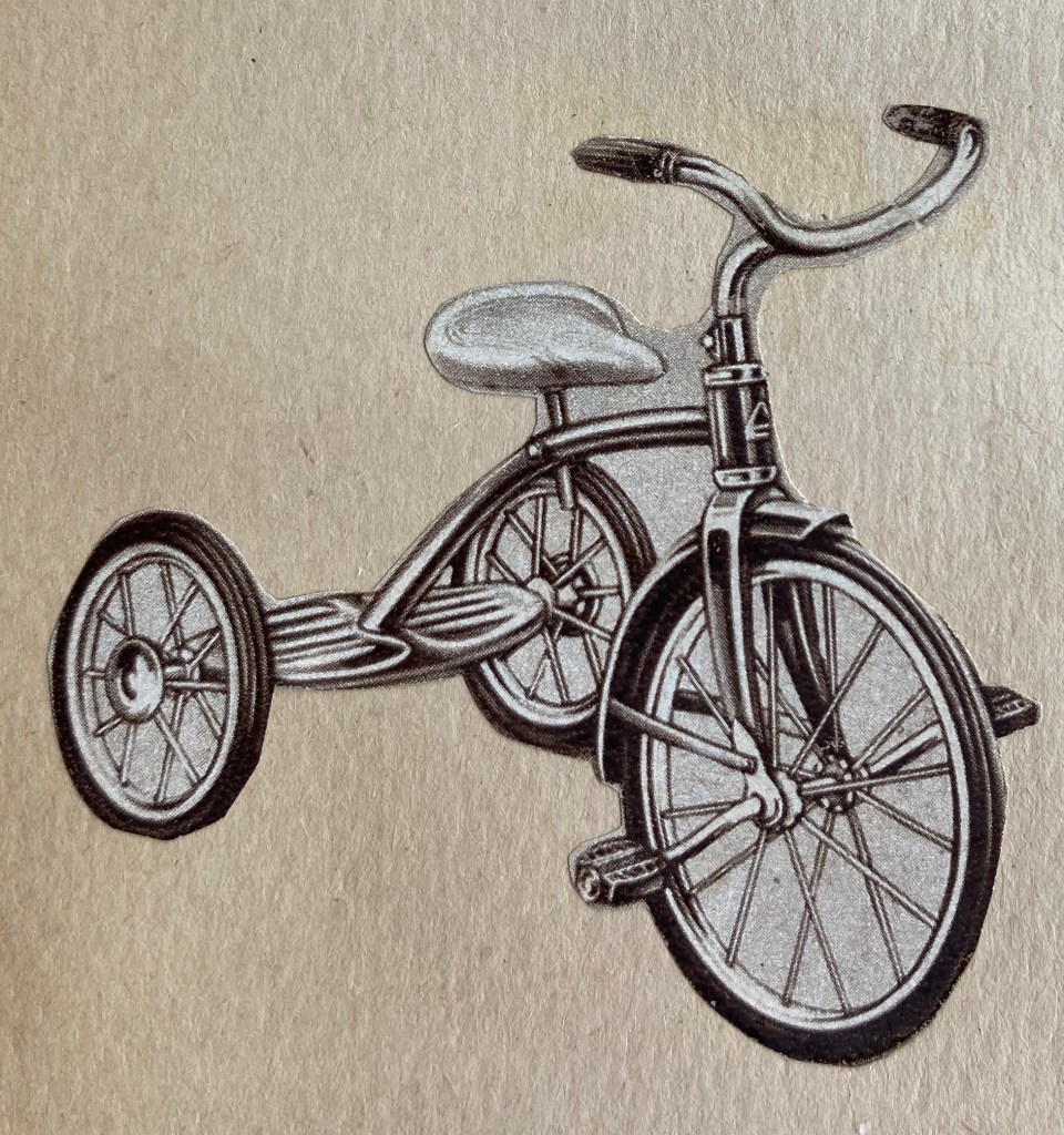 Charlie’ birthday was always the start of the holiday season for the children, with a big share-able present- in this case a wagon – wheels they could drive/ride around the unfinished basement with the tricycle when it was too cold to go out!