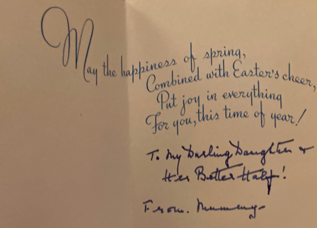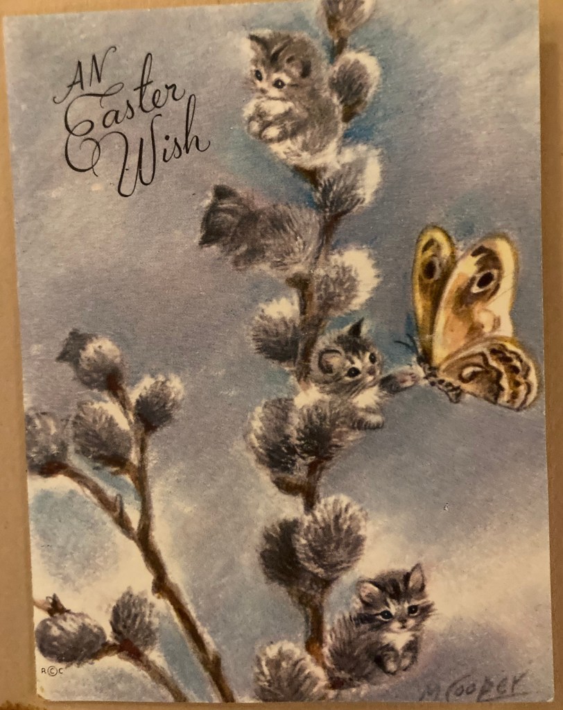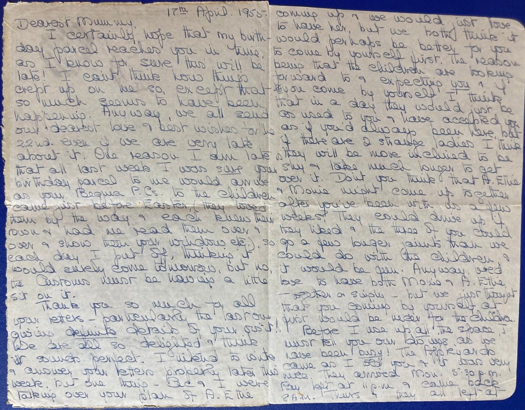 We just got a card from Joan & Ray & they have a son – Christopher. Otherwise no news from anyone. Must stop my fingers can’t write so small any longer anyway! xxx from the children. Nicki is at the vet’s – we get her tomorrow & she’ll no longer be “she” poor little thing! Lots of love Cyn