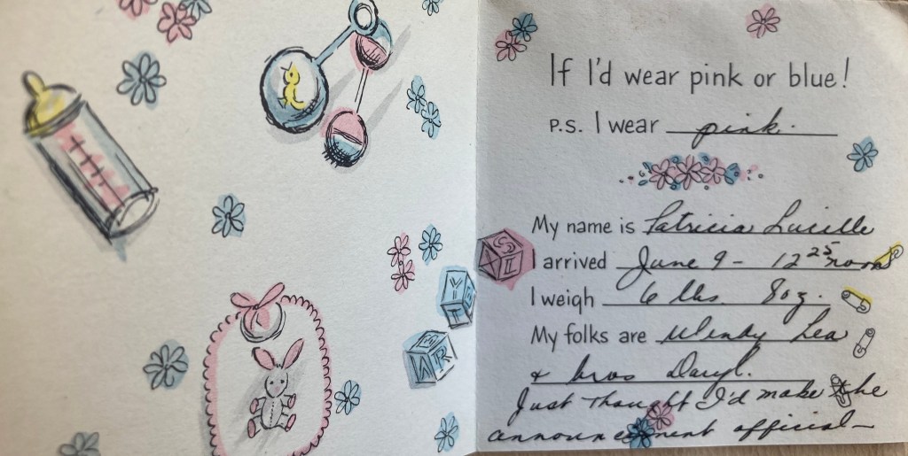 Just a note about people in the letter who haven’t been mentioned lately. Cyn grew up in Newcastle-upon Tyne from the age of 4 in the 1920s, and the Allans were close neighbours. Mrs Allan was Carol’s friend and her daughter Nancy was Cynthia’s- they played together as children, grew up together, and remained friends for over 80 years. Cyn’s Recipe Book from her college days in the 1930s includes ‘Mrs. Allan’s Sandwich Cake’, ensuring that English teatime lived on in Canada. Here Carol has told Cyn of Mrs. Allan’s death. On a happier note, Cyn refers to the wedding of her cousin Millie’s son, Hugh Pembleton, in New York, and the wedding present she hasn’t bought yet. She also needs to buy presents for all the babies that keep appearing in their friends and relations’ lives. There are no letters for July, so what she bought will remain a mystery, but I will post a photo page to cover July!