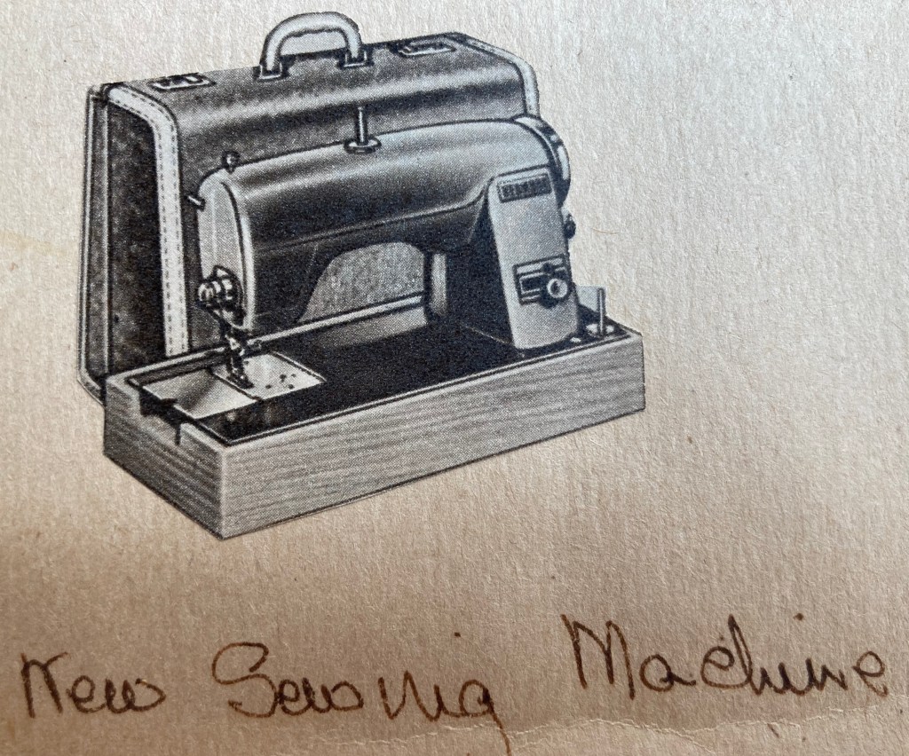 Yesterday was snowing hard. I sat down with the Catalogues & the telephone & had a lovely morning’s shopping! Their spring sale is finished at the end of this month, so I ordered some materials which they had on sale – 2 yds. yellow broadcloth to make jackets for the sundresses I’m going to make of the white & yellow material I got last summer! 3 yds. gingham to make shorts for the children & maybe a little blouse for Linda; 3 yds. yellow orlon/nylon shantung (45 inches wide) to make a best summer dress for me! Aren’t I ambitious?! I also bought a hand embroidered pillowcase for June’s baby; a pair of frilly nylon rubber panties for Connie’s baby; & 2 prs. plastic panties with pictures on for Fanni’s baby. Also a pretty maternity smock for Ruth’s birthday! The latter is a “big” present – partly because Amy sends such generous (& expensive!) presents to the children & partly because I feel sorry for Ruth after Amy’s accounts of their poverty!! The smock is a summer one – sleeveless, of white cotton with a flower pattern, & has a nice little collar & bow & big patch pockets – I thought it might boost her morale! I have just had a long, long chat with Lu [Forsyth] on the phone! We talked mostly about sewing & all our big plans for our future wardrobes! We were giggling wildly because Lu was talking of “sheaths” & “caftan coats” & all the latest ideas from Paris, and I was holding forth on my summer colour scheme being pale blue & yellow with black accessories & after our dearth of clothes during the last few years we had to be amused at our big ideas! But we are both enthusiastic & even if just 1/2 our plans are realized we should do pretty well! I must stop now as I have to write to Auntie Muriel & do my accounts! Will write to you by airmail this week anyway, so you will get it long before you get this. Today Linda told me I was the prettiest of all the Sunday School teachers! Wasn’t that nice! Hugs & kisses from the children & lots of love from us all- Cyn.
