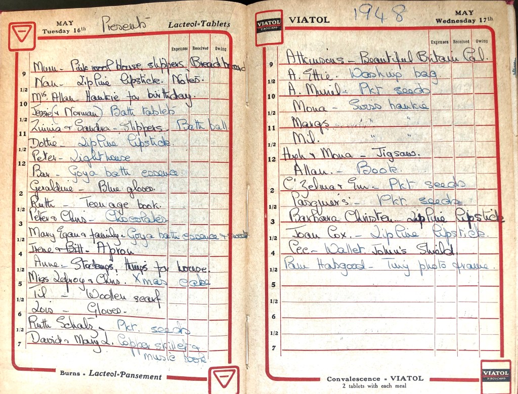 This Christmas there were not as many food parcels from America as there had been the year before, but Auntie Moo had sent a Christmas cake from the West Indies, and Cec was getting food parcels from his family, so we can assume they had treats!