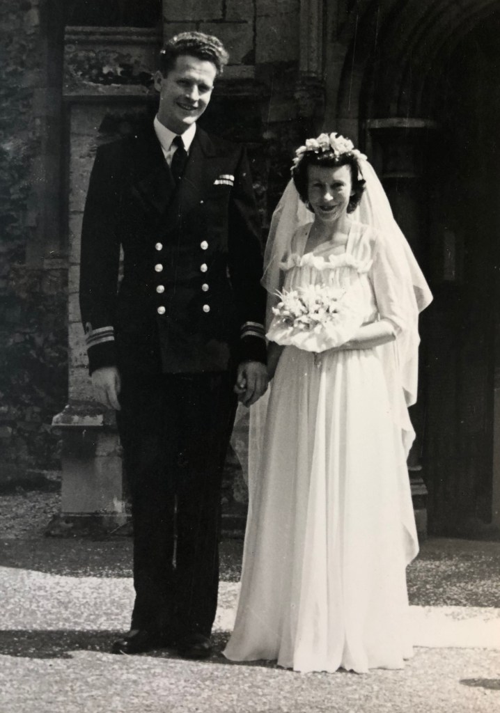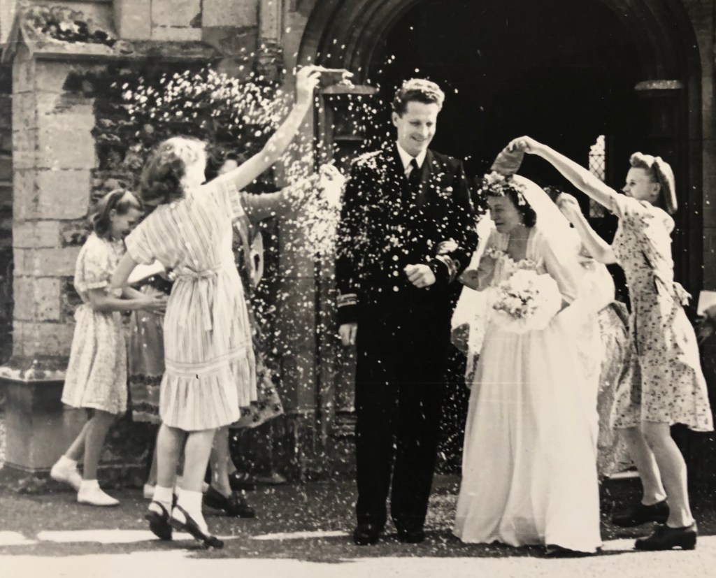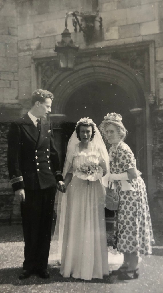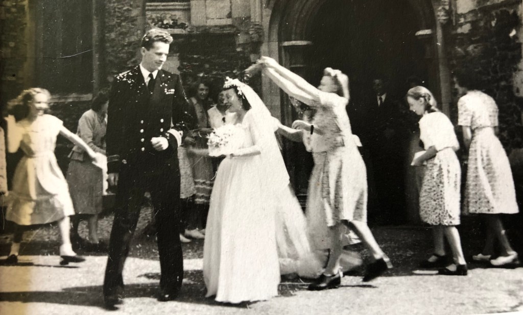 As responses came in, Cyn kept organized lists of the wedding presents that accompanied them and Cec booked travel tickets and hotels for an August honeymoon in France. Outfits were planned: the groom and best man would wear their naval uniform; the bride, bridesmaid, and flower girl would wear white. Auntie Moo had sent the silver Hazell bouquet holder that other family brides had used, and the florist was entrusted with it.