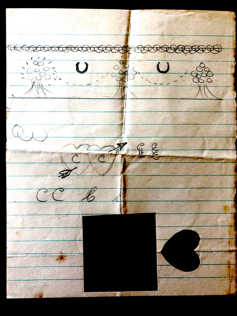 When I began this blog posting the letters of a daughter to a mother, I suggested that nothing very harrowing or emotional would be revealed in them, because no daughter wants to upset her mother living far away in time and distance, unable to console, comfort or rejoice in the moment. An event may be described, it is certainly personal, but it is in the past, and has been survived, and the telling of it is reassuring in to both writer and reader. When I got t0 Cec’s war letters home, I realized this was true of sons as well, especially of events the Admiralty frowned upon sharing. I discovered, however, that other letters crept in, and occasionally were of the moment and emotional. Carol’s letter to her husband as she was on the point of leaving him, was harrowing. And love letters are intensely personal and emotional. They are intended to be read by only one person and I feel a little guilty about sharing them with the world, but they are part of the story. These two notes, treasured by her, were found in one of the slots of Cyn’s writing case.