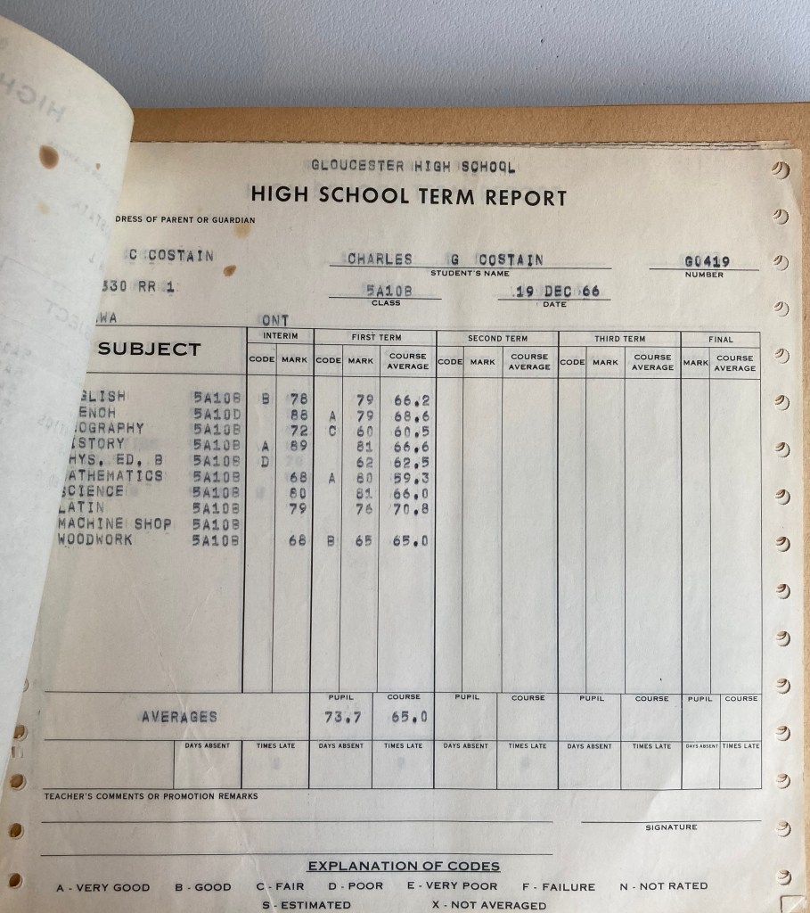The regular demands of the school year carried on: classes, homework, written exams three times a year, and the marks that resulted. Linda and Charlie and their friends participated in what interested them, bought ice cream sandwiches in the cafeteria to augment their bag lunches, and did well in classes, being promoted in June to Grades 11 and 12.
