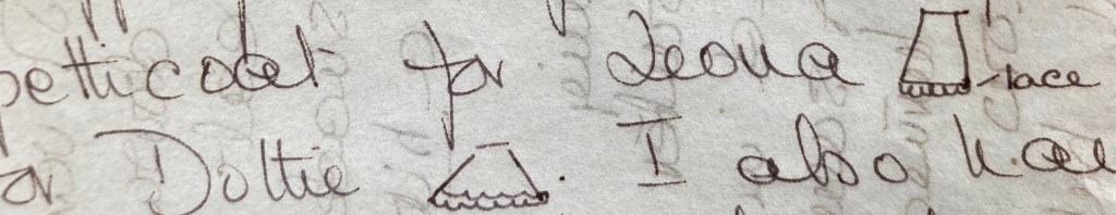 I just made my Christmas cakes today – can you imagine! And I was really quite well on with my preparations a few weeks ago! However we have no plans for Christmas at all as the measles interrupted all plans – Lila is going home for the holiday & Santiago is going to the Moores’ so we will even be alone for Christmas dinner which I regret rather – I like to have a party! On the other hand I won’t have to bother whether I’m on time with the turkey or not! The last time I wrote to you was just after Bob Spellar’s visit & that weekend I had quite a sore throat & cold, so I managed to get someone else to take my S. Sch. class & had a nice peaceful time. The next week I was quite busy making my dress (the stripy grey) I’ll try to draw it!