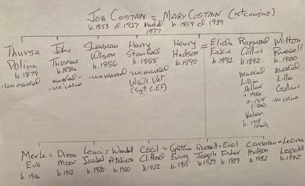 So I know very little about the Eakin side of my father’s family, having only met one of his cousins, Evelyn Abbott. This rough sketch is all I know of my grandmother’s family- any corrections welcome!