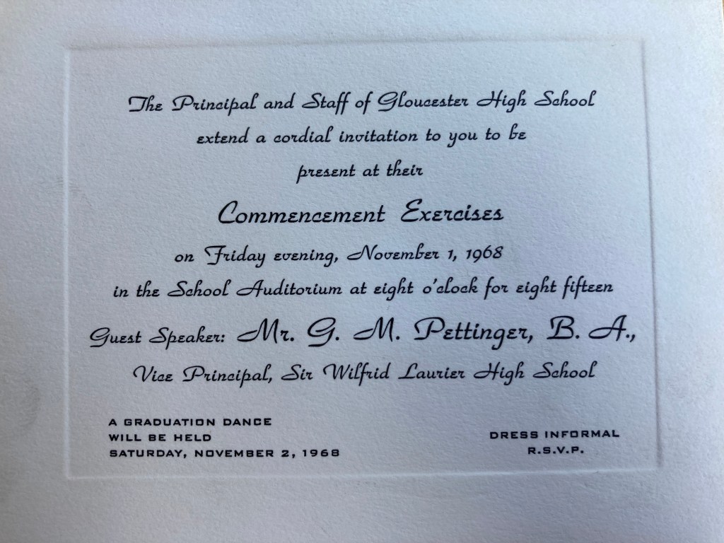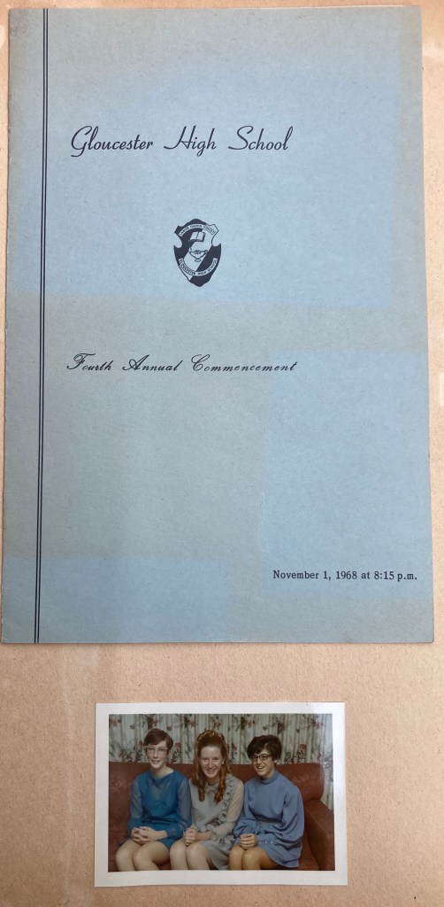 This letter from my grandmother reminds me of how different my ‘60s’ attitude was, compared to that of my grandmother and even my mother. It was the flower children era! I was at university, free to study what I wanted (unlike my mother at my age), free to wear jeans every day to class if I wanted (and I did, although I believe my high school finally stopped insisting that girls wear skirts after I left), although I also enjoyed dressing up in my mother’s creations. It’s just that the graduation ceremony and dinner/dance after were not as important to me as they were in their eyes, because they had had dances that had been rites of passage for them. By November 1969, I had moved on, and the rituals of high school no longer mattered that much. I had enjoyed the weekend, seeing my friends again, wearing my lovely outfits, going through the graduation ceremony, celebrating with my brother and cousin and friends, but I was focused on my new life and was enjoying it a lot more than high school!