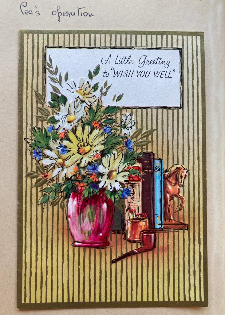 Meanwhile, Cec has been in hospital, Linda has come home for Reading Week, shopped, and been fitted for her new dresses, Cec then had a thyroid operation and spent another couple of weeks recovering- with excitement of the graduation ceremony and dance, combined with the visit of his nephew Bruce to accompany Linda, to entertain him. His friends and colleagues sent cards with messages of concern, as did his daughter (who had seen him the weekend before his operation that Tuesday, and was going home the next weekend for her graduation .)