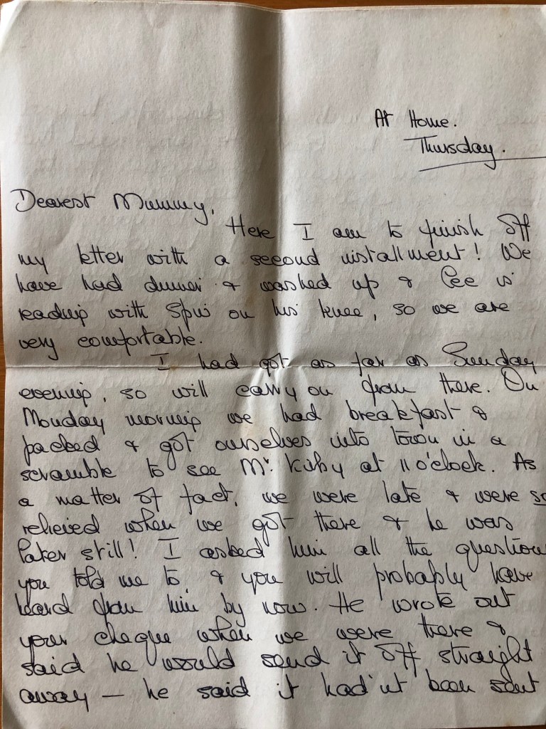 Once again I spent half an hour with Dr. Ewing today, and in spite of the fact that the Male Nurse said he would not talk to me, as soon as I entered the Ward, he got up and came to meet me, and we had half an hour of talk on both sides. He said he could not talk very well now, so I told him that if he would only wear his dentures he could talk quite well, you see Mrs. Ewing he will not wear his dentures; – he said he could not be bothered, just in the same way, he, some days refuses to shave. He will also now only wear Hospital woollen sports shirts – he says it is too warm to put on a collar and tie. I am afraid he is often very awkward and stubborn with the staff. He did today however have on one of his own suits. In spite of all this however he does look well, and says he does feel well. With me today he was quite chirpy, and took a keen interest in all the people I spoke about, you see it is only the past you can discuss with him, as he does not read the papers nor will he watch the Television. They have just got a lovely new 21” set in the Day Room, but he will not look at it, and grumbles because it is on all day & evening. The Nurse told me he just sits, and whether he thinks whilst he is sitting one cannot tell. Certainly his memory of the past is still good, and he keeps referring to people, I must confess I had forgotten.
