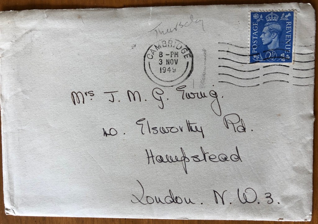 As has been covered earlier in this Project, Cyn’s mother, Carol Ewing, had left her husband, Dr. J.M.G.(Gordon) Ewing, at the end of 1947 and joined Cynthia in Cambridge. In 1948, they had met Cec who was working on his Ph.D. at Cambridge, and Cyn and Cec married in the summer of 1949, and left England at the beginning of 1950, while Carol went home to St.Vincent. Because Carol and Cyn were living together in Cambridge, there are no letters covering that period, but sometime during those 2 years, Gordon Ewing was institutionalized, diagnosed with hardening of the arteries of the brain, and remained there until his death in 1964. There were letters exchanged between Carol, Cyn, and lawyers and doctors; Cyn sent her father gifts and magazine subscriptions, with notes and photos occasionally, which he acknowledged; and from these letters, it is clear that Carol was kept informed of her husband’s condition by friends in Newcastle. The letters give us a window into elder care in the 60s with a difficult patient- and the little anyone at a distance could do. The Carnegies are quite formal in writing to Carol, so not close friends, but they are kind. The letter seems to have arrived in Ottawa after Carol had gone home to St. Vincent in March 1961 and been sent on by Cyn.