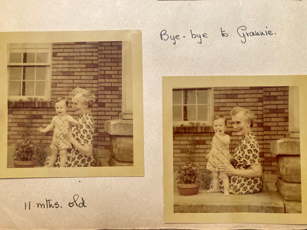 Unfortunately as summer approached, the Costains indulged in a colour film, so the photographs in the scrapbook are not as clear. Linda at 10 1/2 months says goodbye to Grannie standing rather precariously, and I’m sure Carol was very sad to leave. But the letters to her resume, so we get a clearer picture of life in a growing family in the 1950s.