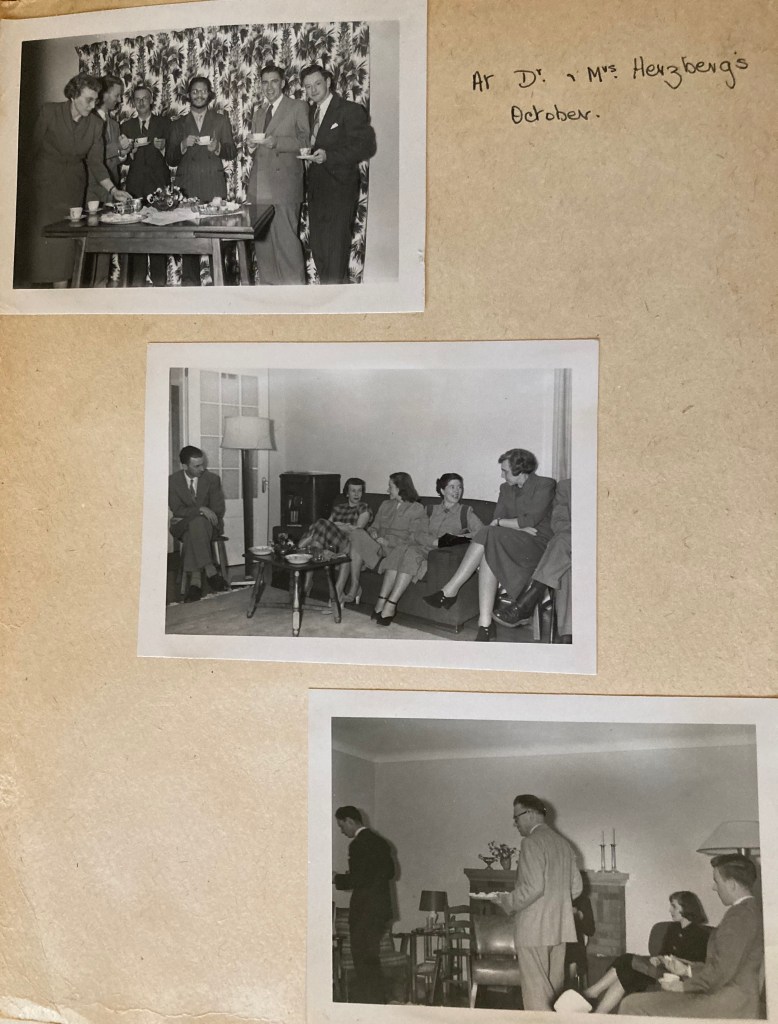 Cec and Cyn also met the people who worked in the NRC with Dr. Herzberg in the Pure Physics Division, people who were to become close friends: Luise Herzberg, Alec Douglas, Jack Shoosmith are the first 3 in the top photo, Cyn on the sofa in the second, and Dr Herzberg in the third.