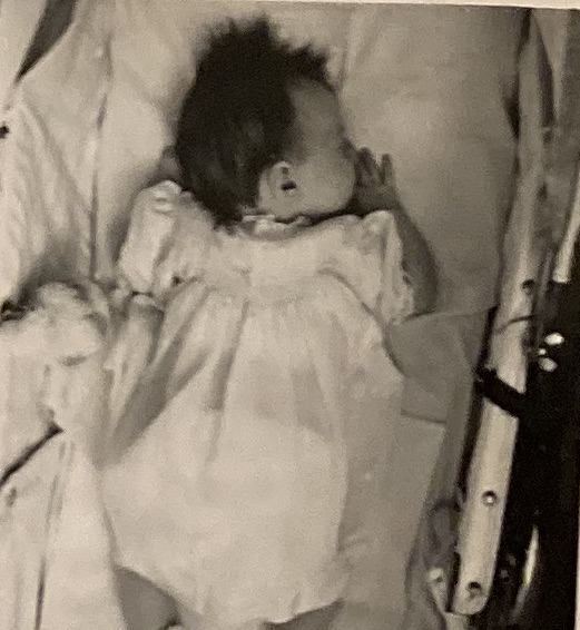 And the baby was fine. Arrayed in the lace trimmed nighties and the double breasted cardigan her loving relatives had made her, Linda continued to flourish. ( And I remember that chair, red and white.)
