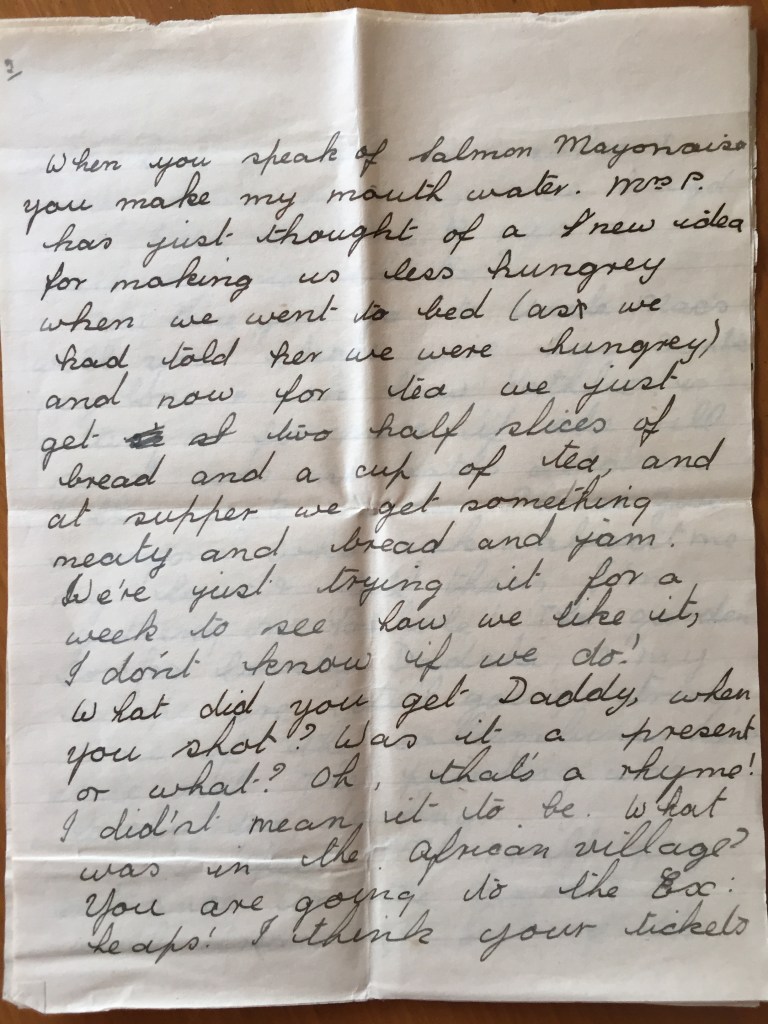 One of our favourite stories when we were children was my mother’s tale of the midnight feast. She never wrote down that story, but in this letter we have the introduction…