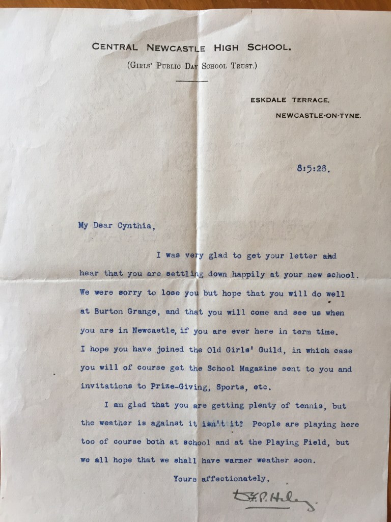 Yesterday was St Valentine’s Day, and this morning I heard a woman on the radio explaining that she sent Valentines to her friends’ children because they loved getting something in the mail with Their Own Names on, even in these days of social media. Some things don’t seem to have changed, as Cynthia is delighted to receive an answer to her letter sent to her former headmistress at the high school she had left. I didn’t provide a transcript of this letter since the typewriting was quite clear- even if the date was wrong!